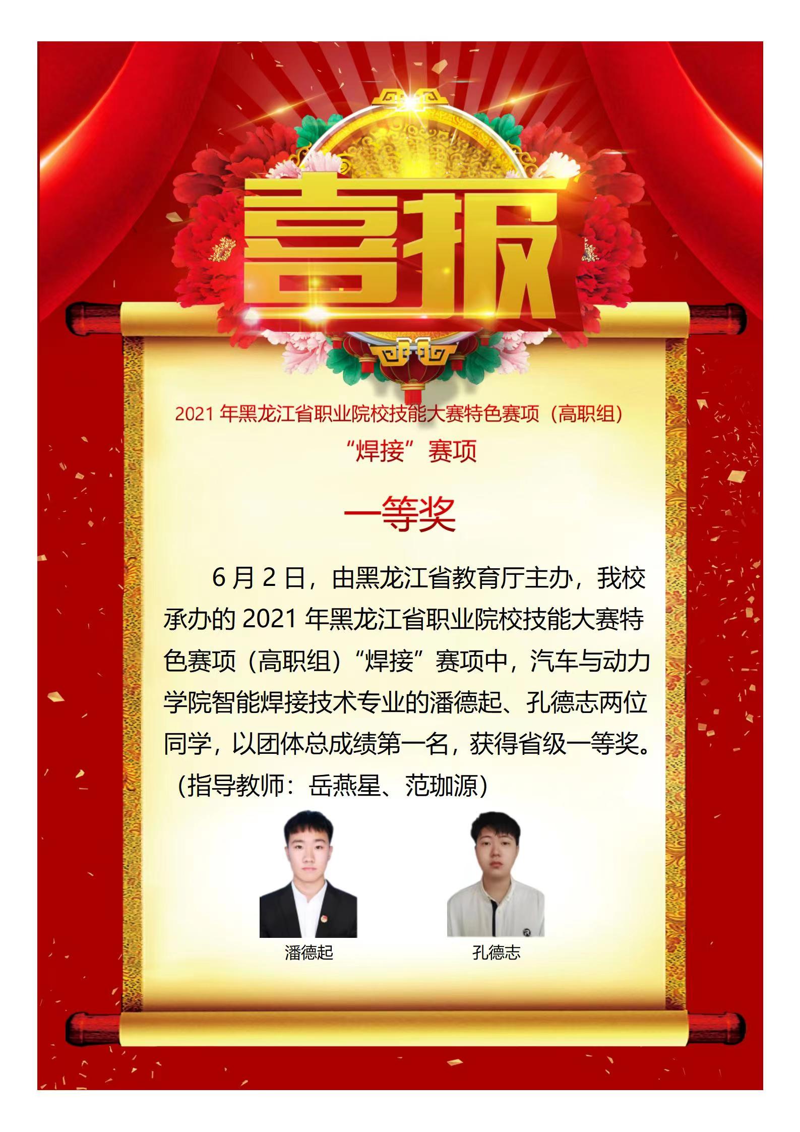 我院学生获省特色赛项“焊接”赛项一等奖