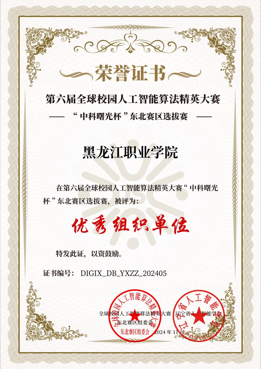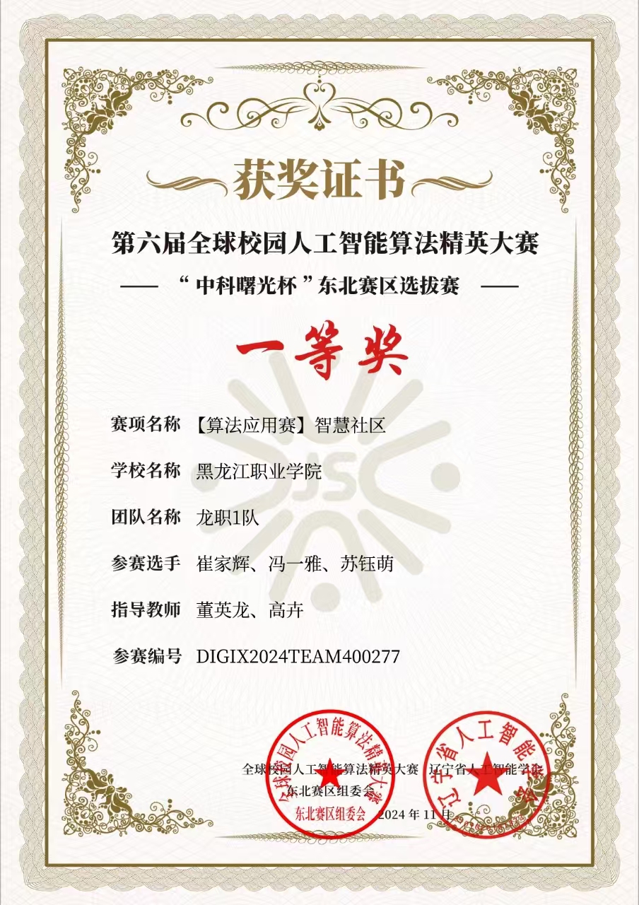 2024 年 10 月 26 日,校园人工智能算法精英大赛 “中科曙光杯” 东北赛区选拔赛圆满结束,学院应用电子技术专业学生在此次大赛中获得多个奖项。