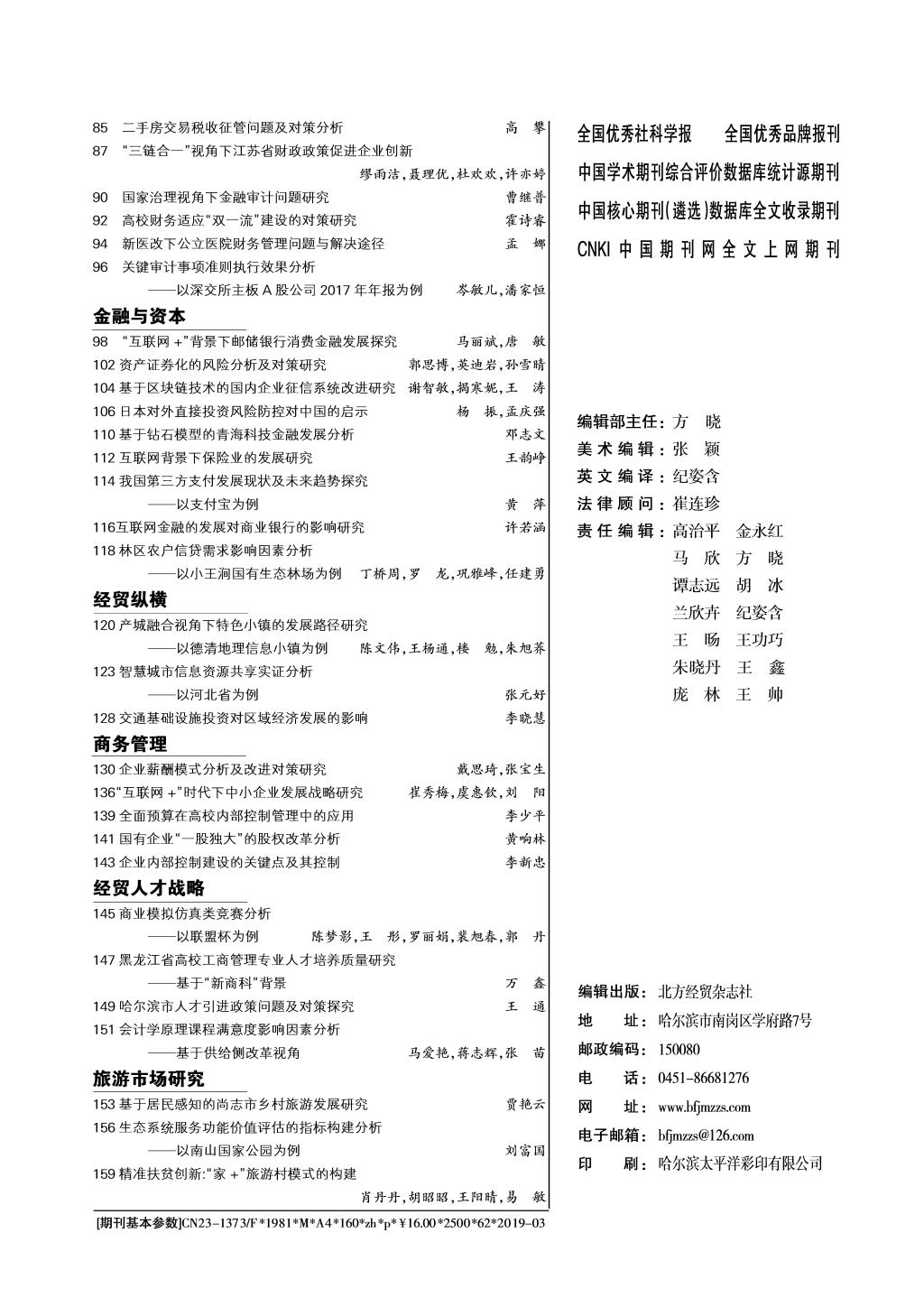 版权所有:北方经贸杂志社 地址:黑龙江省哈尔滨市南岗区学府路5号 邮编150080 电话:0451-86681276 86646778 邮箱:bfjmzzs@126.com