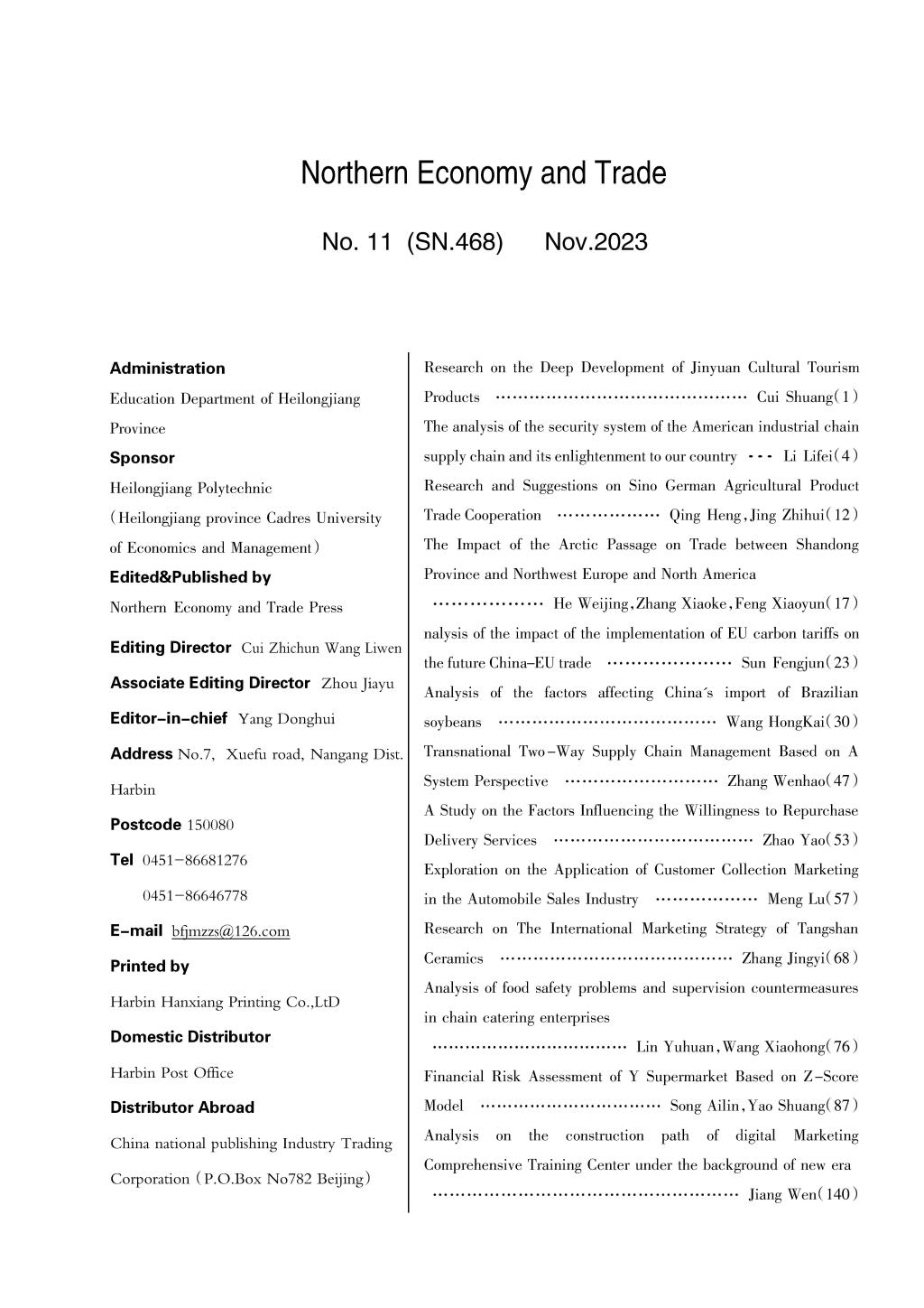 《北方经贸》2023年十一月刊