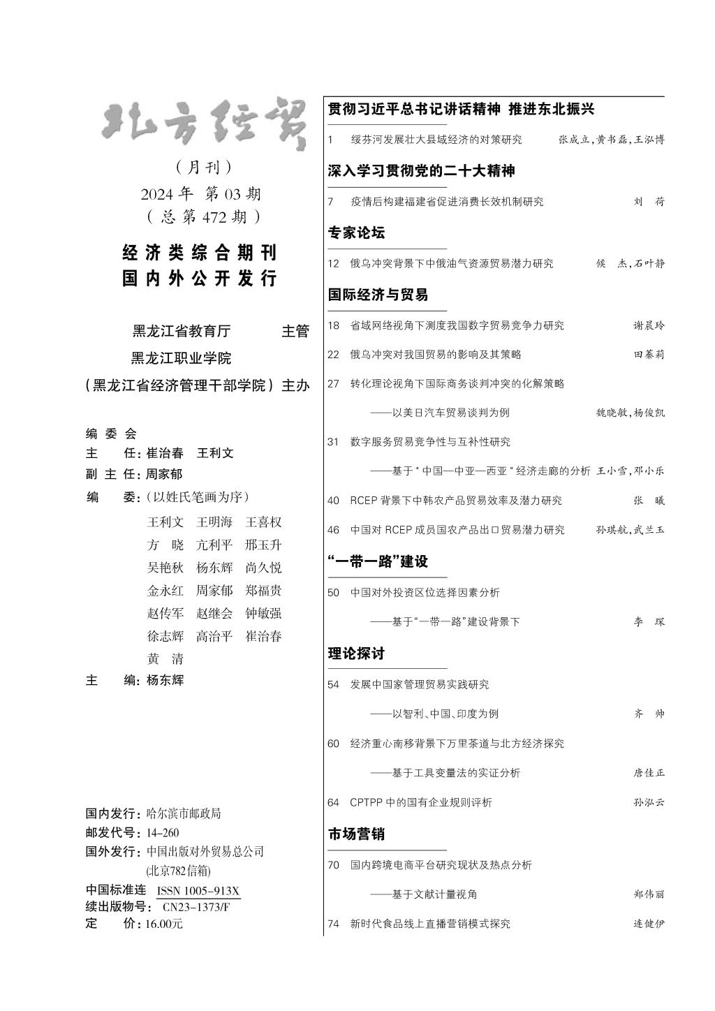 版权所有:北方经贸杂志社 地址:黑龙江省哈尔滨市南岗区学府路5号 邮编150080 电话:0451-86681276 86646778 邮箱:bfjmzzs@126.com