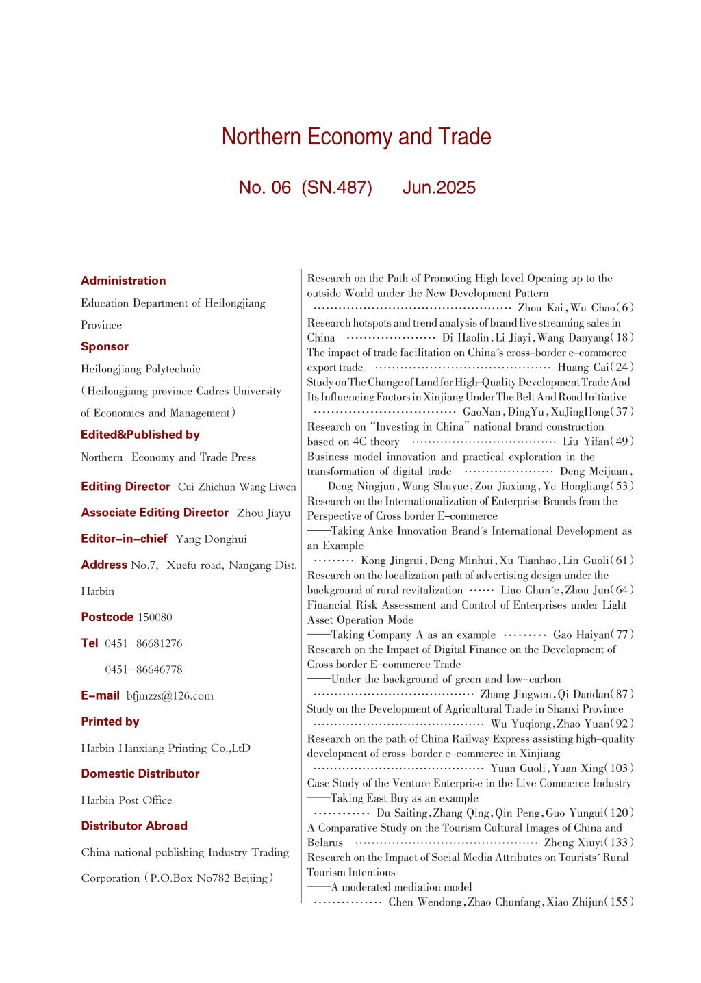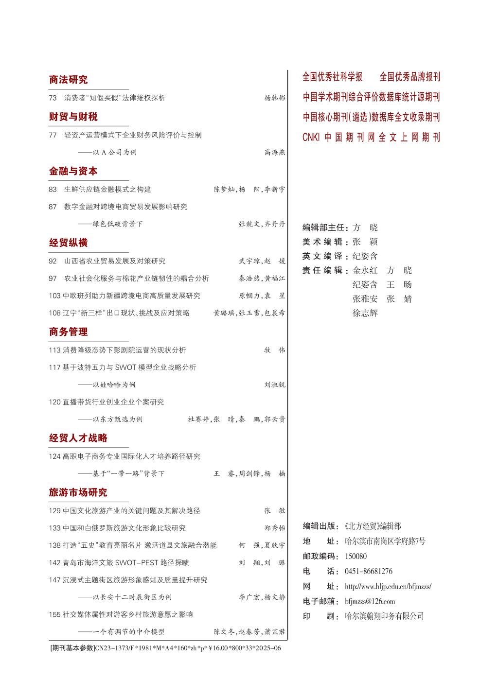 版权所有:北方经贸杂志社 地址:黑龙江省哈尔滨市南岗区学府路5号 邮编150080 电话:0451-86681276 86646778 邮箱:bfjmzzs@126.com