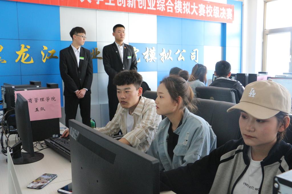 5月7日下午,2019年黑龙江省“学创杯”大学生创新创业综合模拟大赛校级决赛在清华楼八楼模拟公司实训室举办,经过初赛报名和选拔,来自工商管理学院、食品药品学院、信息工程学院3个分院的11支学生参赛团队入围校级决赛。