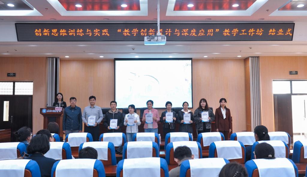 ▲学校为工作坊参培教师代表颁发结业证书