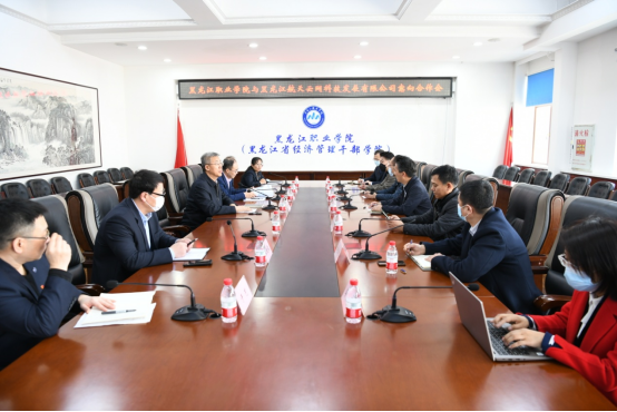 3月21日,黑龙江航天云网科技发展有限公司总经理李华一行八人来贝博官网进行考察回访。校长王利文接待了考察团一行,原副校长王明海和相关负责人陪同走访。