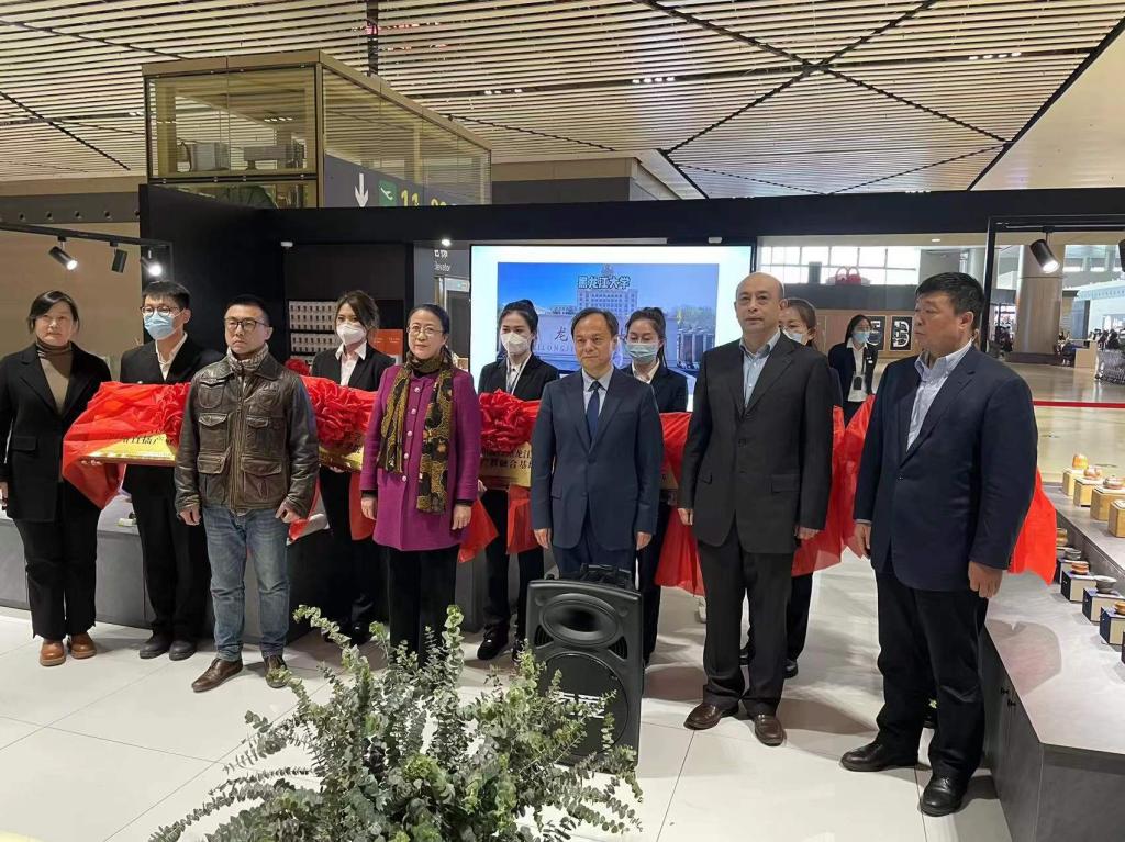 4月28日,“黑龙江礼物”品牌上线活动在哈尔滨机场T2航站楼举行。省委宣传部、省文旅厅、省发改委、省商务厅及多个地方政府的领导,省机场集团、省邮政公司等企业代表,学校副校长吴艳秋、工商管理学院党总支书记张玲及多位高校代表参加活动。