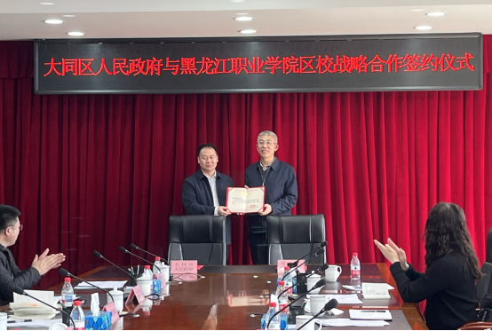 3月20日上午,应大庆市大同区人民政府邀请,校长王利文、副校长王广文带领学校相关部门负责人赶赴大庆市,与大庆市大同区人民政府举行区校战略合作签约仪式,充分发挥学校教科研优势,推动政校企合作走深走实,进一步服务我省地方特色产业发展。大同区委书记诸葛祥龙主持签约仪式。