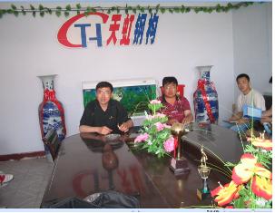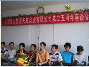 学生与天虹钢构实业有限公司领导座谈,共同对顶岗实习和公司成立五周年进行座谈.