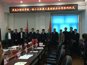 王明海副校长与哈工大机器人集团副总裁白相林共同签署了《校企合作协议书》,并合影留念。
