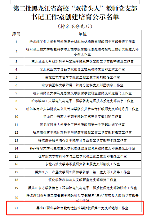 喜报:智能制造技术学院教师第二党支部 荣获第二批黑龙江省高校“双带头人”教师党支部书记工作室创建培育单位