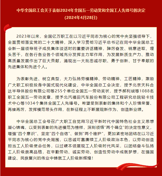 喜报:工业机器人技术教研室荣获全国工人先锋号荣誉称号