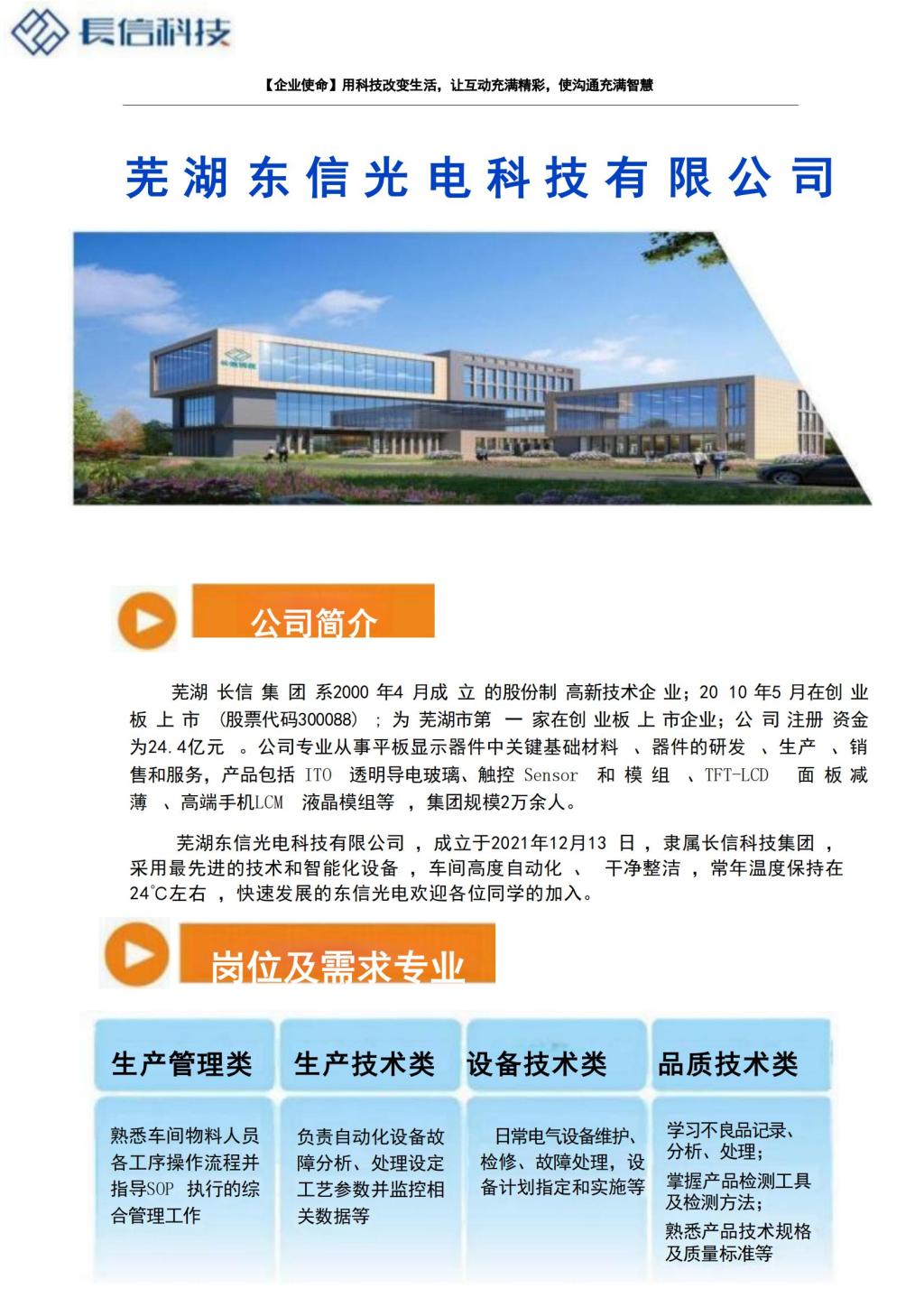 芜湖东信光电科技有限公司来我院招聘