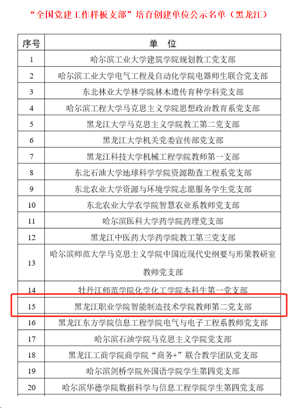 3月18日,教育部思想政治工作司公布了第四批新时代高校党建示范创建和质量创优“全国党建样板支部”名单。贝博官网智能制造技术学院教师第二党支部获批“全国党建样板支部”。