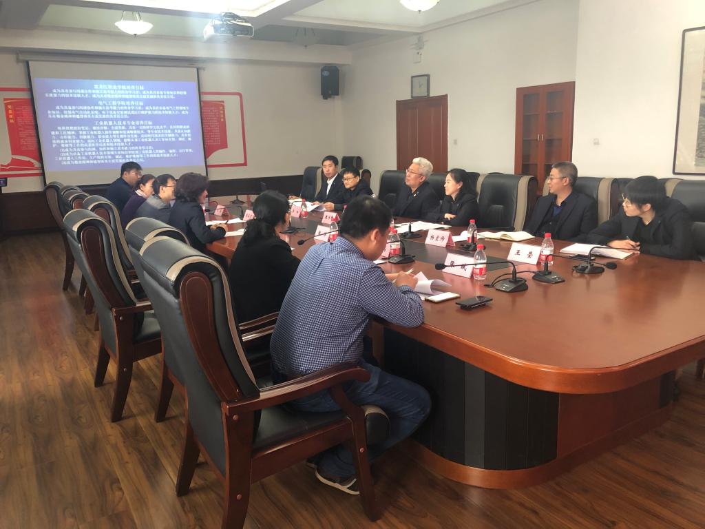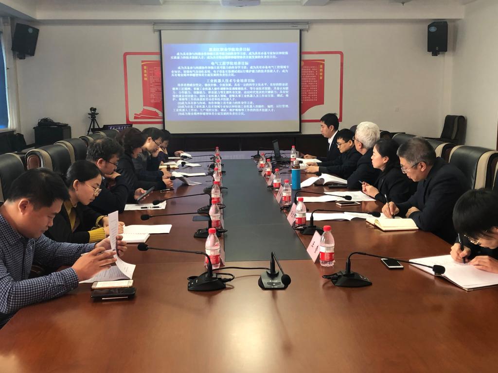 出席本次会议的有电气工程学院院长敖冰峰、哈尔滨职业学院电气工程学院院长雍丽英、哈尔滨工业大学机器人研究所副教授蒋再男、江苏汇博机器人技术股份有限公司黑龙江省区经理王英、山东栋梁科技设备有限公司区域经理张斌、BB贝博艾弗森官方网站电气工程学院工业机器人技术专业教研室主任鲍敏及专任教师乔阳、杨宏帅、张祎玮、王莹。