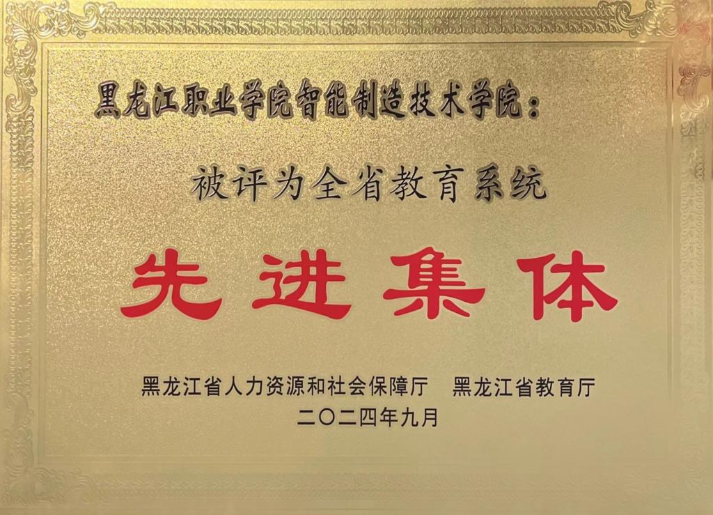 近日,黑龙江省人力资源和社会保障厅、黑龙江省教育厅发布了《关于表彰全省教育系统先进集体和先进个人的决定》,贝博官网智能制造技术学院被授予“2024年全省教育系统先进集体”荣誉称号。