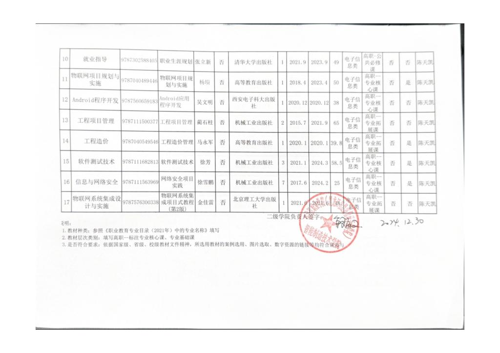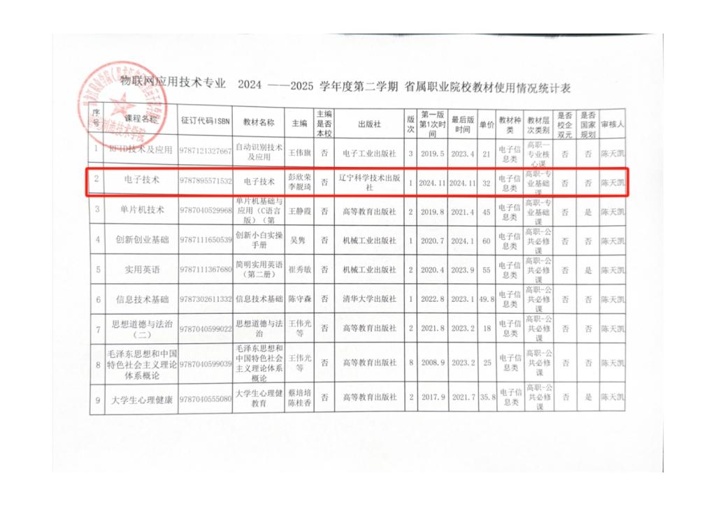 物联网应用技术专业2024--2025第二学期省属职业院校教材使用情况统计表