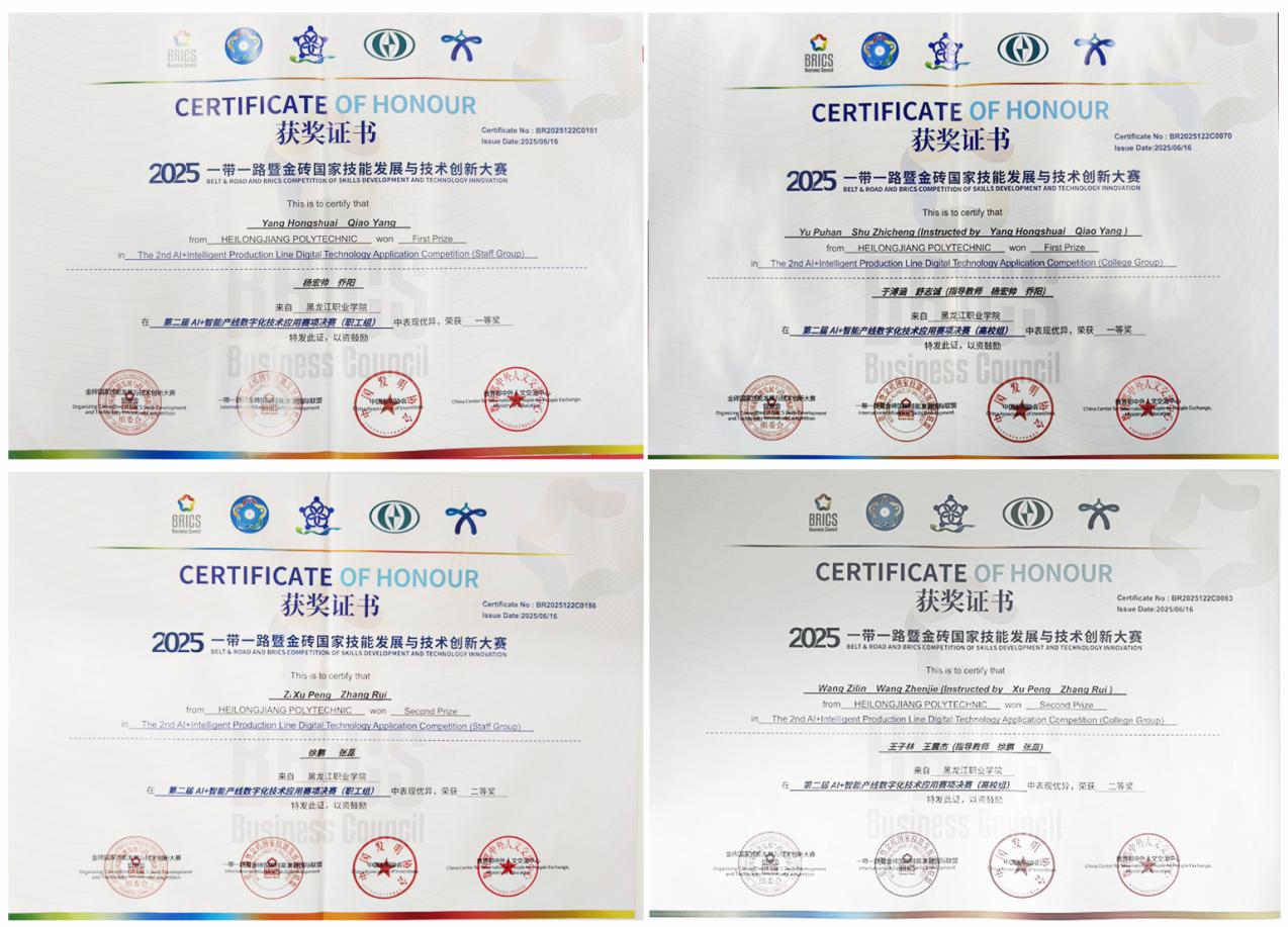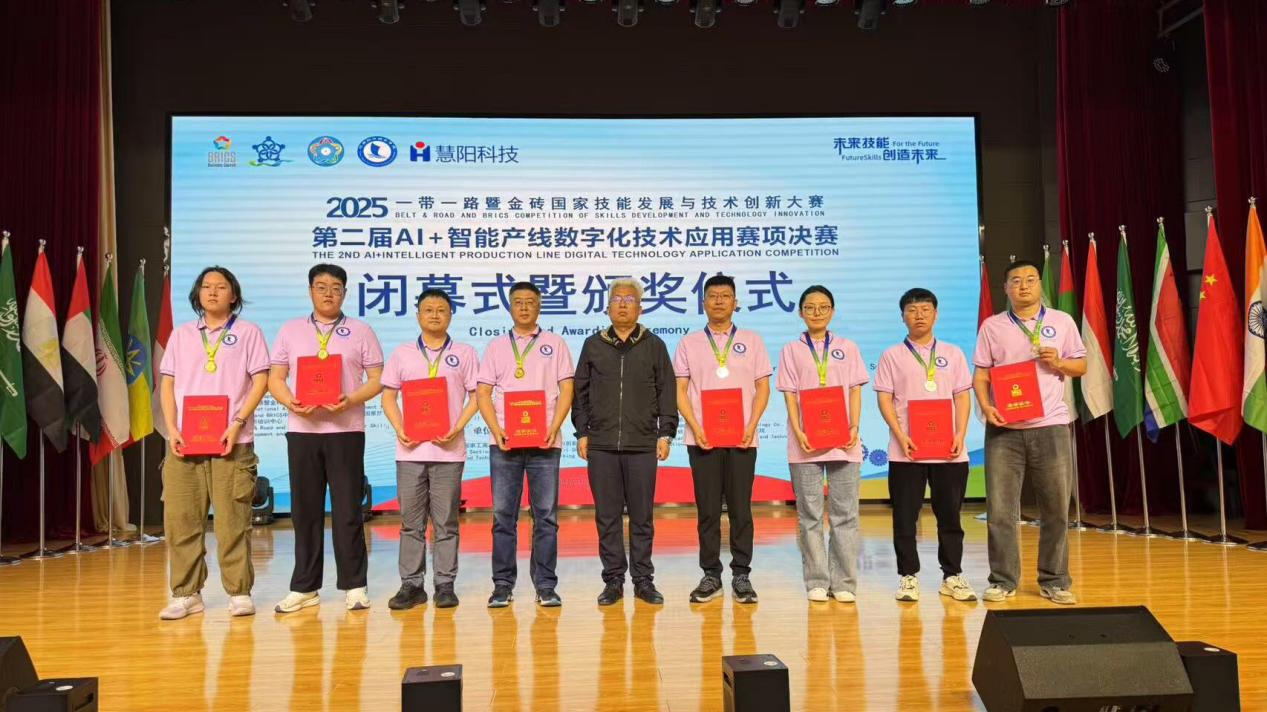 喜报:贝博官网师生在2025“一带一路”暨金砖国家技能发展与技术创新大赛AI+智能产线数字化技术应用赛项首次同揽金银奖牌