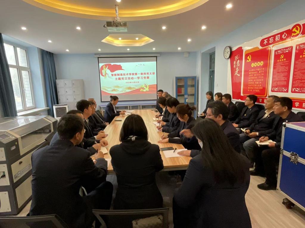 首先,于书记带领大家学习了新党章内容,强调全体党员应认真履行党员的职责和义务,始终沿着正确方向前进,持续不断加强自身思想政治建设。同时,于书记对规范使用党建标识相关事项做了说明,为全体党员发放了新版党徽,并回收了旧版党徽。最后,于书记对学校2023年度“廉洁文化活动月”活动内容进行了布置安排,动员支部党员教师积极参加,充分展现智能制造技术学院党员教师先锋模范带头作用。