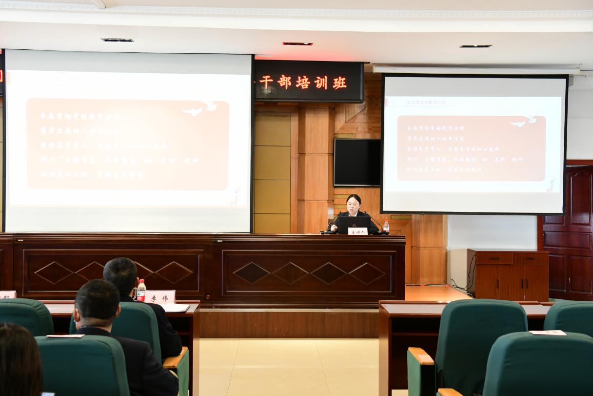 为深入学习贯彻习近平新时代中国特色社会主义思想和党中央决策部署,进一步巩固深化“学习贯彻习近平新时代中国特色社会主义思想主题教育”成果,11月27日-28日,学校党委举办党务干部“能力素质”双提升培训班。学校党委班子全体成员出席会议,党委书记崔治春作动员讲话,党委副书记周家郁主持会议,学校各部门党总支书记、党总支副书记、党支部书记、专职组织员、科级以上年轻干部参加此次培训。我院副院长、教师第二党支部书记鲍敏在会上做交流分享。
