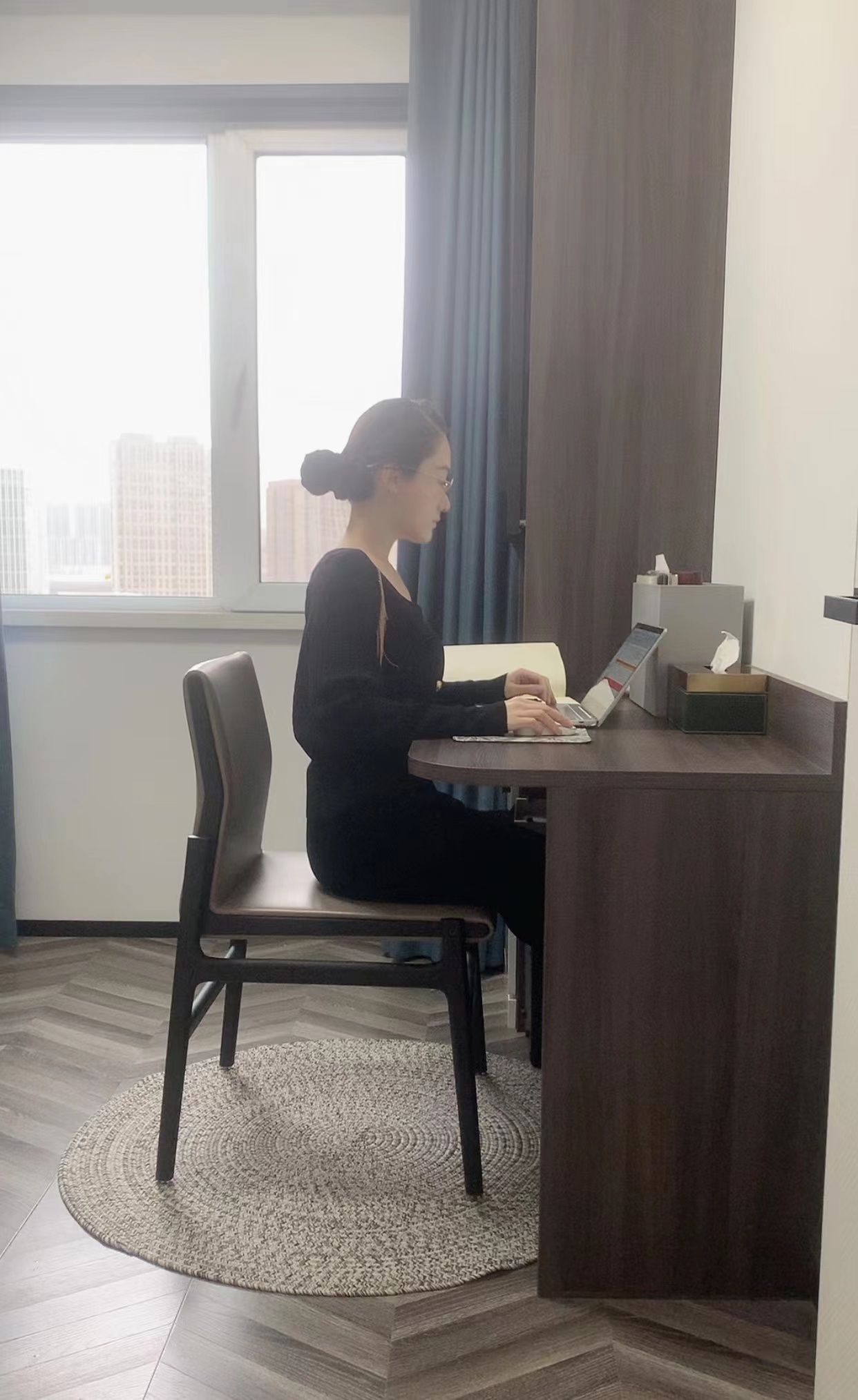 身体恢复后的第二天,心系学生的她便立即投入了战斗。此时的她身体状态已不允许进入内城一线,于是她忍着病痛与乏力,不断给自己加油鼓起提振精神,在家中继续承担分院的学生确诊病例省市旅居史排查表和学生隔离情况表的工作。在病床上的她,每日坚持召开班会,传达防疫政策要求,掌控学生思想动向,及时对学生进行答疑解惑、消除恐惧心理,及时把控舆论导向,解答学生及家长询问电话。每日到深夜,她不知疲倦只希望再多做一些,因为她知道远方有着数百个家庭的父母,或许在寒风中牵挂,守候着子女平安的消息,她要将每一名学生都安全都做到第一位。