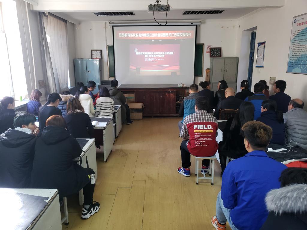 2019年11月8日上午九点整,电气工程学院全体党员和部分师生观看了首都教育系统服务保障国庆活动宣讲团黑龙江省高校报告会网络直播。