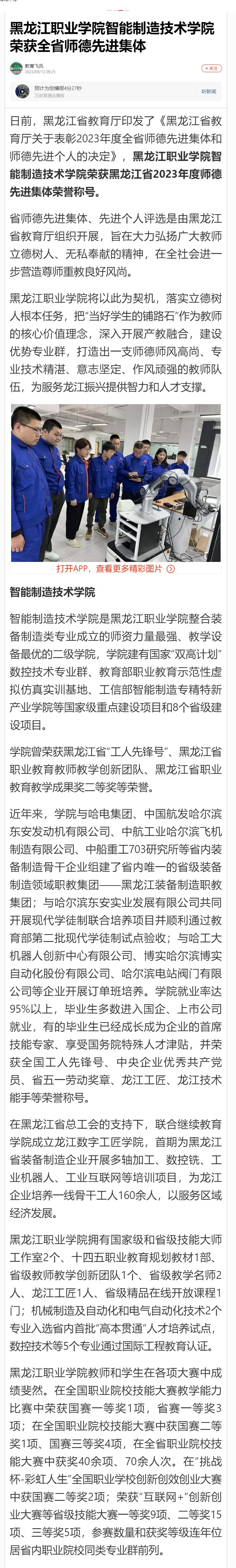 【搜狐新闻】BB贝博艾弗森官方网站智能制造技术学院荣获全省师德先进集体