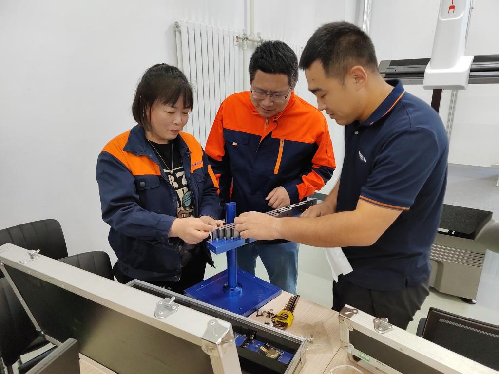 2022年8月27日,我学院周延昌、高维艳、卢天奇三位教师与思瑞技术人员,在工匠楼精密测量实训室进行CROMA CLASSIC-8106三坐标测量机调试。思瑞技术人员主导、三位老师参与,全程严格按照要求步骤进行安装、调试。调试过程中解决了测量平台、测针校验等出现的问题,最终三坐标测量机达到合格的测量精度。该设备为我院精密测量课程提供硬件支持,同时为师生科研服务提供平台,助力我院双高建设。