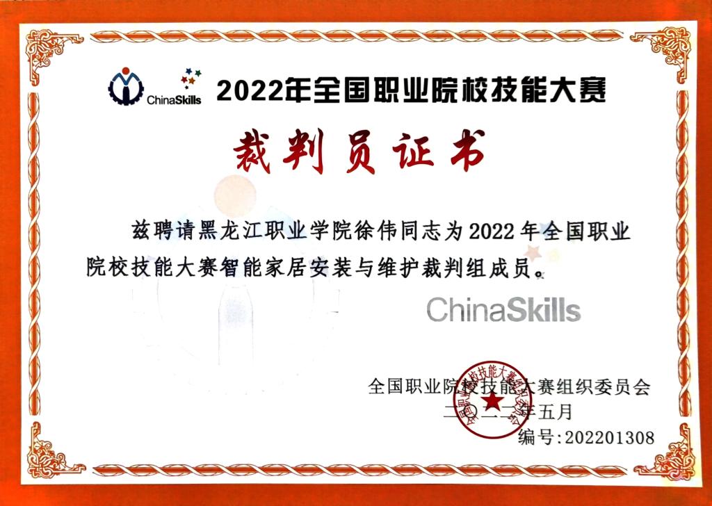 全国职业院校技能大赛的裁判员主要从行业、企业、院校的技能高手和骨干教师中选拔,徐伟被录入教育部国家级大赛裁判库,由裁大赛组委会选定参加执裁工作,这是对贝博官网教师教学水平和教学成果的肯定。此次比赛中徐伟担任评分裁判,他秉持公开、公平、公正原则,严格履行裁判员职责,执行竞赛规则,圆满完成大赛组委会安排的执裁任务,受到组委会一致好评。