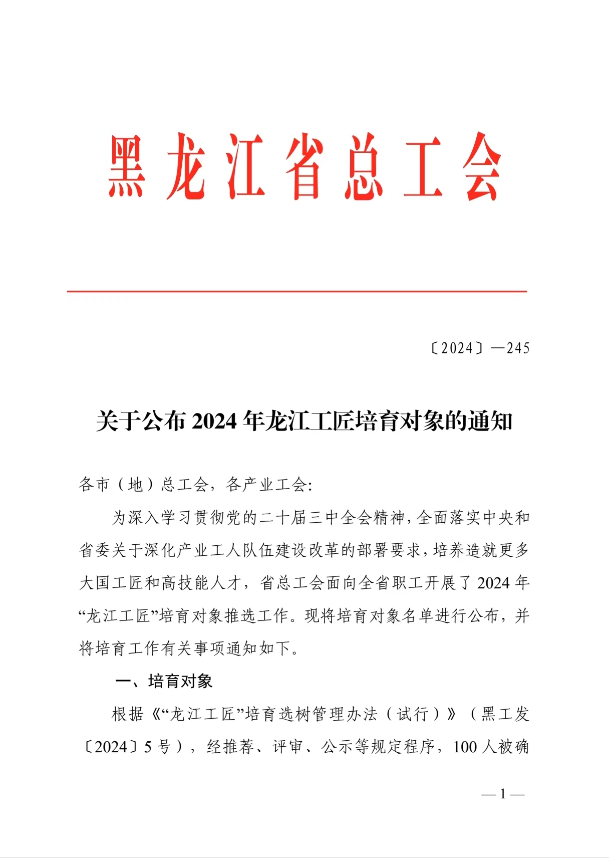 近日,省总工会印发了《关于公布2024年龙江工匠培育对象的通知》,100人被确定为2024年度“龙江工匠”培育对象,我院教师李宪辉荣获此项殊荣。