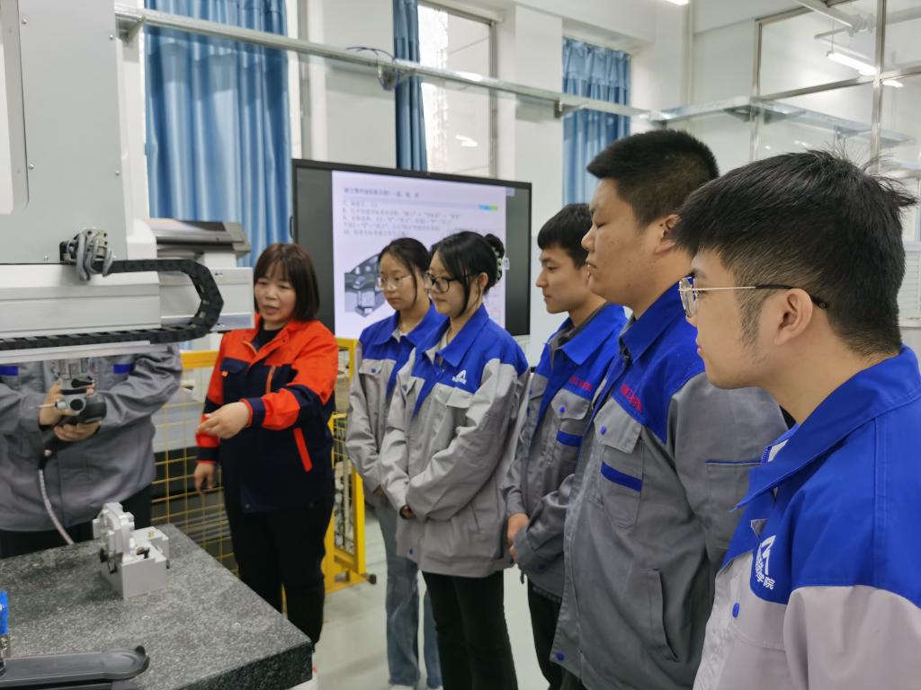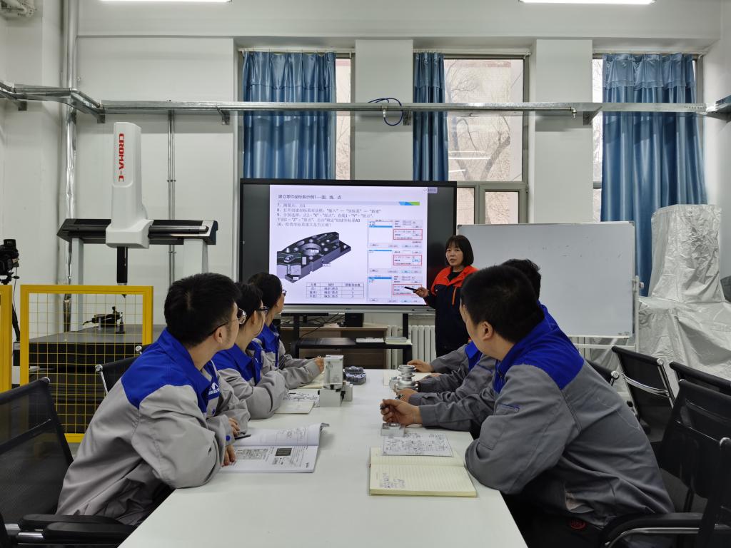 为提高学生实践操作能力,机械基础教研室教师利用业余时间以兴趣小组活动的方式指导学生实操,激发学习兴趣、促进学生全面发展,并使之成为一项常态化的教学工作。2023年4月27日,智能制造技术学院教师高维艳带领三坐标检测学生兴趣小组学生在工匠楼精密测量实训室,进行每周的小组活动,本次小组活动的检测项目是塑膜和机加零件检测,虽然本次课的内容难度较大,但兴趣小组的学生们积极踊跃学习,全程严格按照老师要求的步骤进行检测,又一次圆满的完成学习任务,提高了检测水平。通过学生兴趣小组活动的开展,不仅培养了学生的实操能力还发展了学生的个性特长,彰显了贝博官网的办学特色。