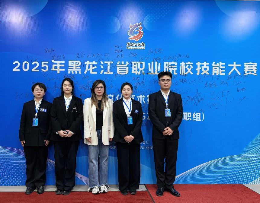 2025年5月10日,黑龙江省职业院校技能大赛视觉艺术设计赛项在黑龙江旅游职业技术学院拉开帷幕,本次比赛共有来自22所职业院校88名参赛选手参赛,我院2024级物联网应用技术专业郭雅馨、杨雯月、于潇颖、李金辉四位同学在张晓旭、于雪梅老师的指导下,经过激烈的角逐喜获三等奖,实现我院在该赛项零突破。