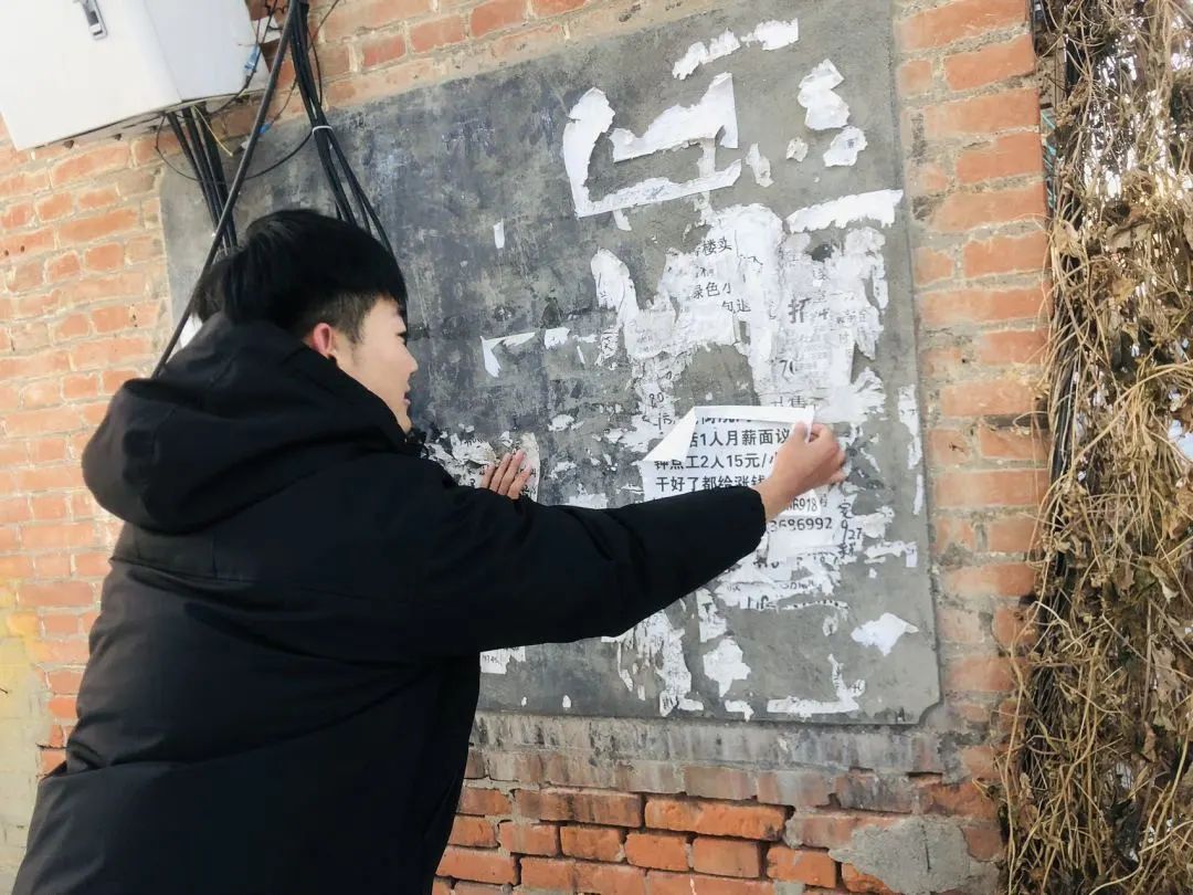 志愿服务期间,志愿者们对社区墙面上的小广告进行了集中清理。大家充分发挥不怕脏、不怕累的优良作风和团结协作的精神,相互配合,经过大家的共同努力,使社区内的环境卫生得到明显改变。