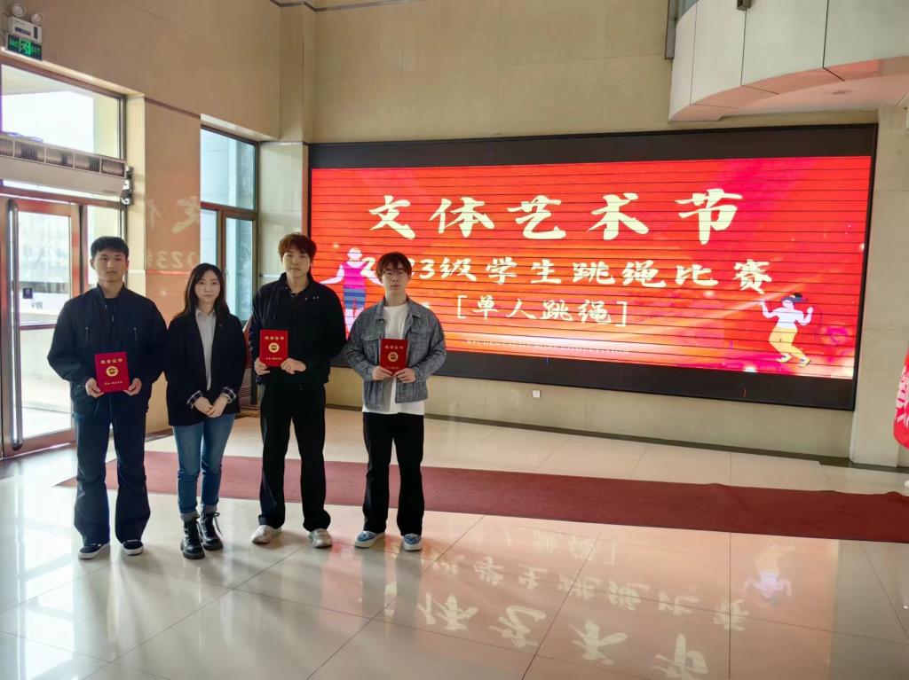 四月春色渐浓,伴随和煦春风,为丰富大学生的校园文化生活,活跃校园氛围,增强同学们的体育锻炼意识。BB贝博艾弗森官方网站校团委于2024年4月11日中午12:00时,在学校操场举办“文体艺术节”2023级学生跳绳比赛。