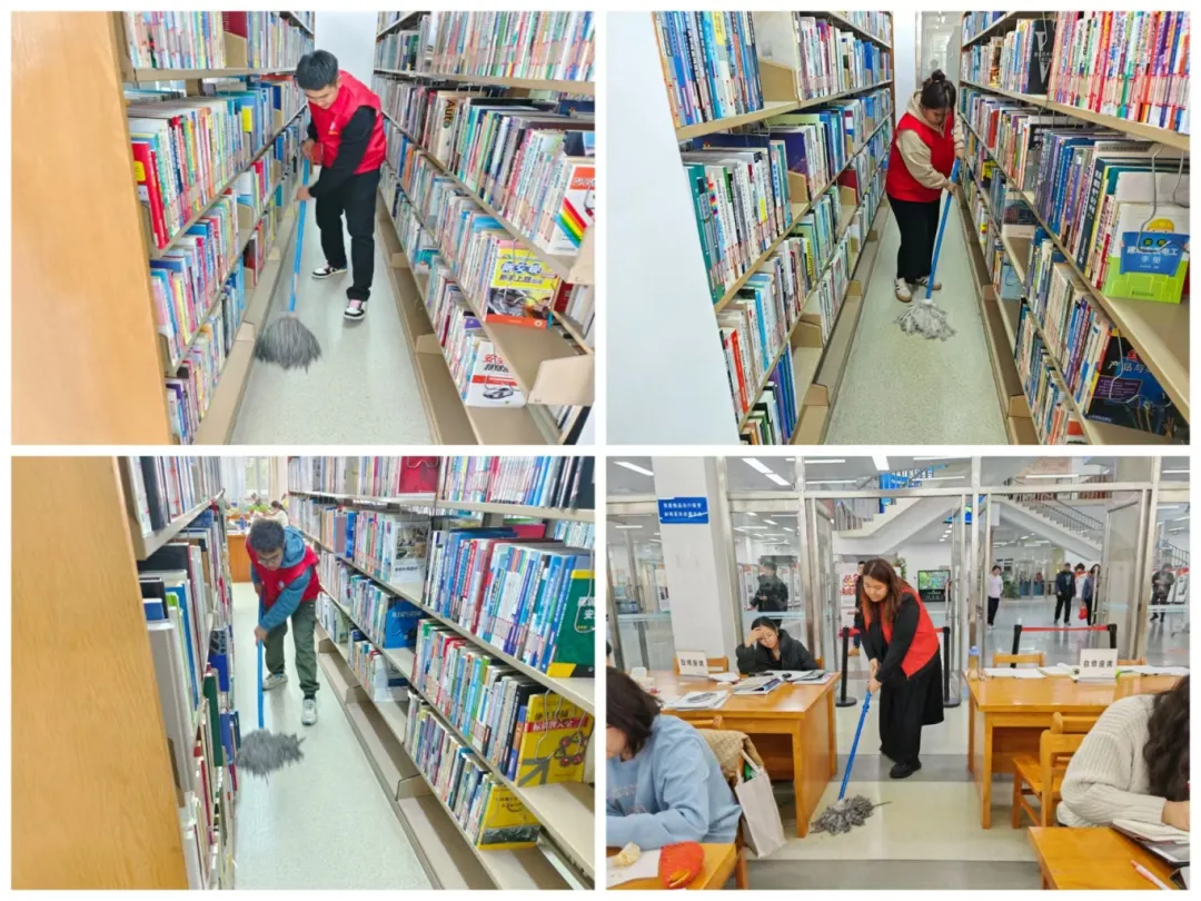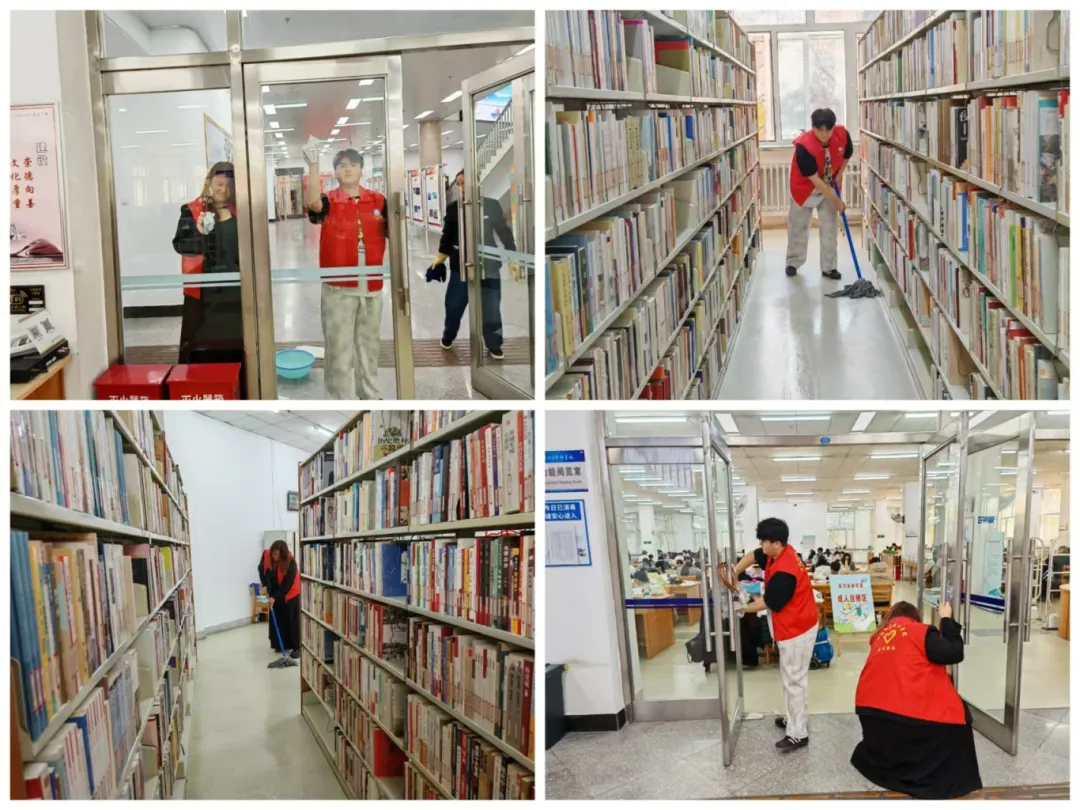 志愿服务期间,志愿者们积极打扫馆内卫生,仔仔细细打扫馆内每一处角落,将图书馆的书架和地面清理得一尘不染,在志愿者们的细心打扫下,哈尔滨市图书馆内焕然一新。
