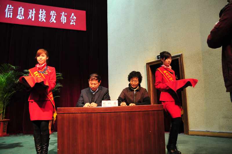 10月27日上午9时,由省工业和信息化委员会、省教育厅、省人力资源和社会保障厅主办,我院和信息技术职业学院承办的2010年全省院校学生就业与企业用工信息对接发布会在哈尔滨和平邨和平会堂胜利召开。全省28所本科院校、24所高职院校、51所技工学校及100多家知名企业参加了会议并发布供求信息。我院院长赵继会同志在主席台就坐,并分别与哈尔滨电机厂、牡丹江恒丰纸业有限责任公司现场签订了校企合作协议,学院党委副书记张玉山同志代表学院作了2011届毕业生信息发布。