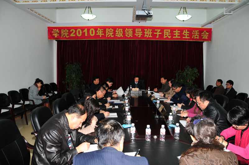 在精心组织学习、广泛征求意见的基础上,11月3日上午,我院2010年院级领导班子民主生活会在学院党委会议室召开。会议由党委书记冯玉龙同志主持,除党委副书记张玉山同志公出外,学院领导班子全体成员出席了会议,部分党政部门负责人和教职工代表列席。省委组织部组织指导处赵宏宇和李明刚同志参加了会议,并对民主生活会的质量进行了测评。