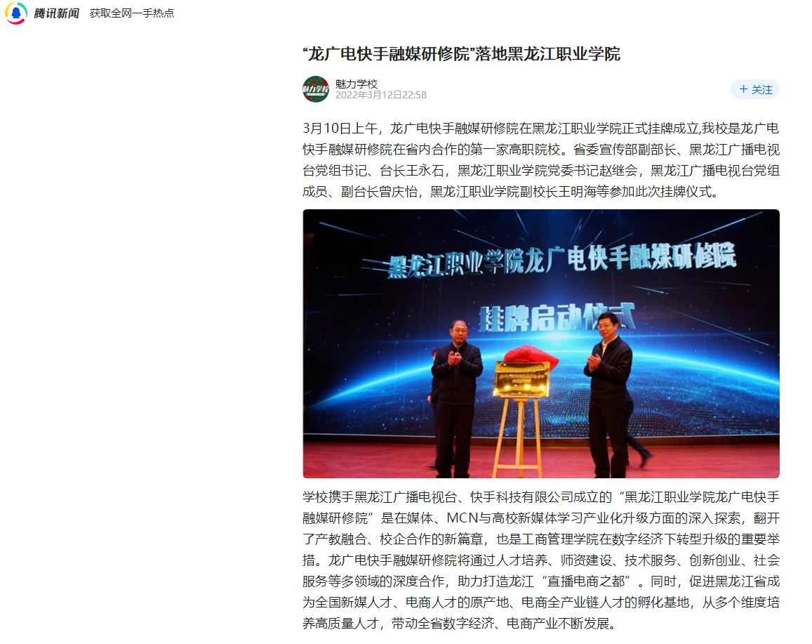 上一篇:【一点资讯】“龙广电快手融媒研修院”落地BB贝博艾弗森官方网站