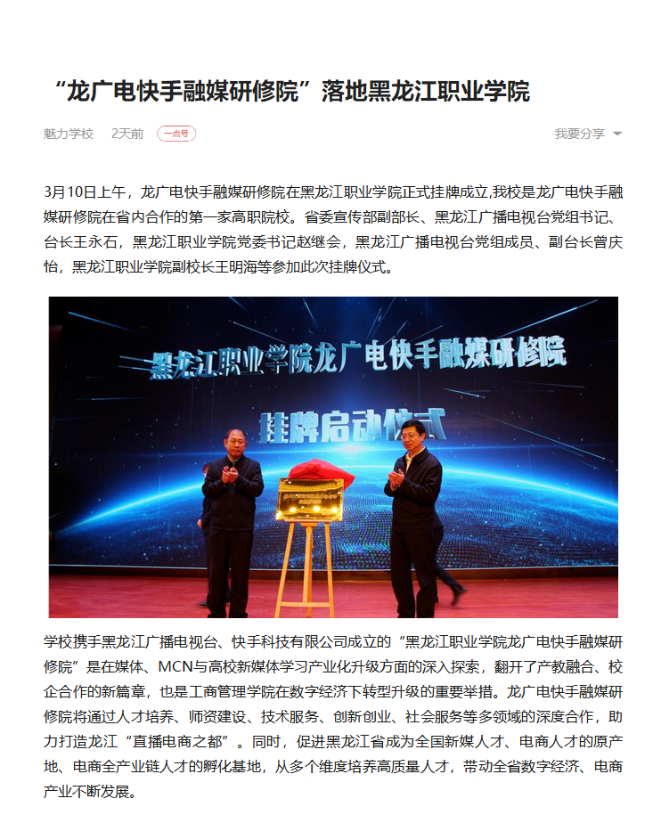 下一篇:【腾讯新闻】“龙广电快手融媒研修院”落地BB贝博艾弗森官方网站