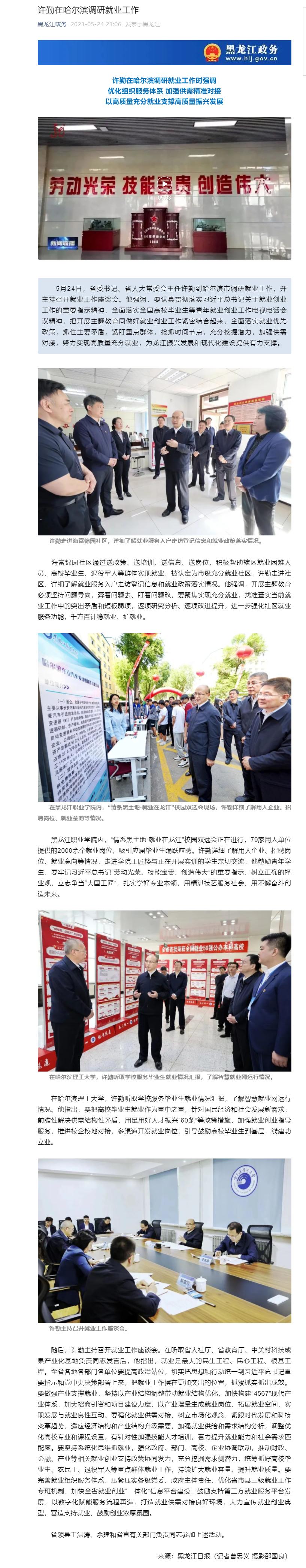 【黑龙江日报】许勤到哈尔滨市调研就业工作