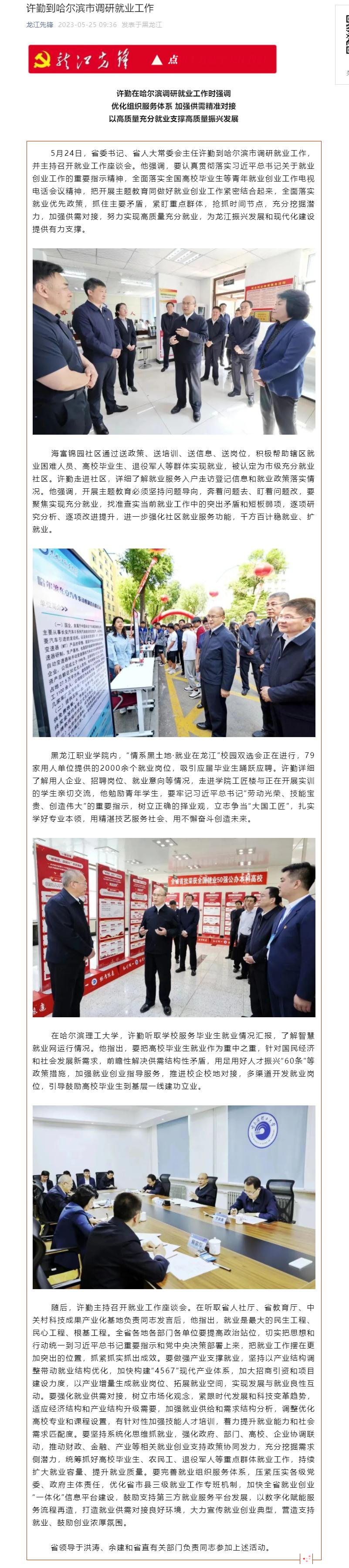 【龙江先锋】许勤到哈尔滨市调研就业工作