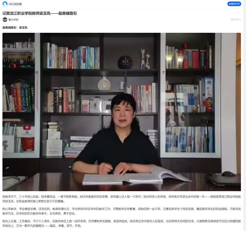 【QQ浏览器】记BB贝博艾弗森官方网站教师梁玉凤——最㺯铺路石