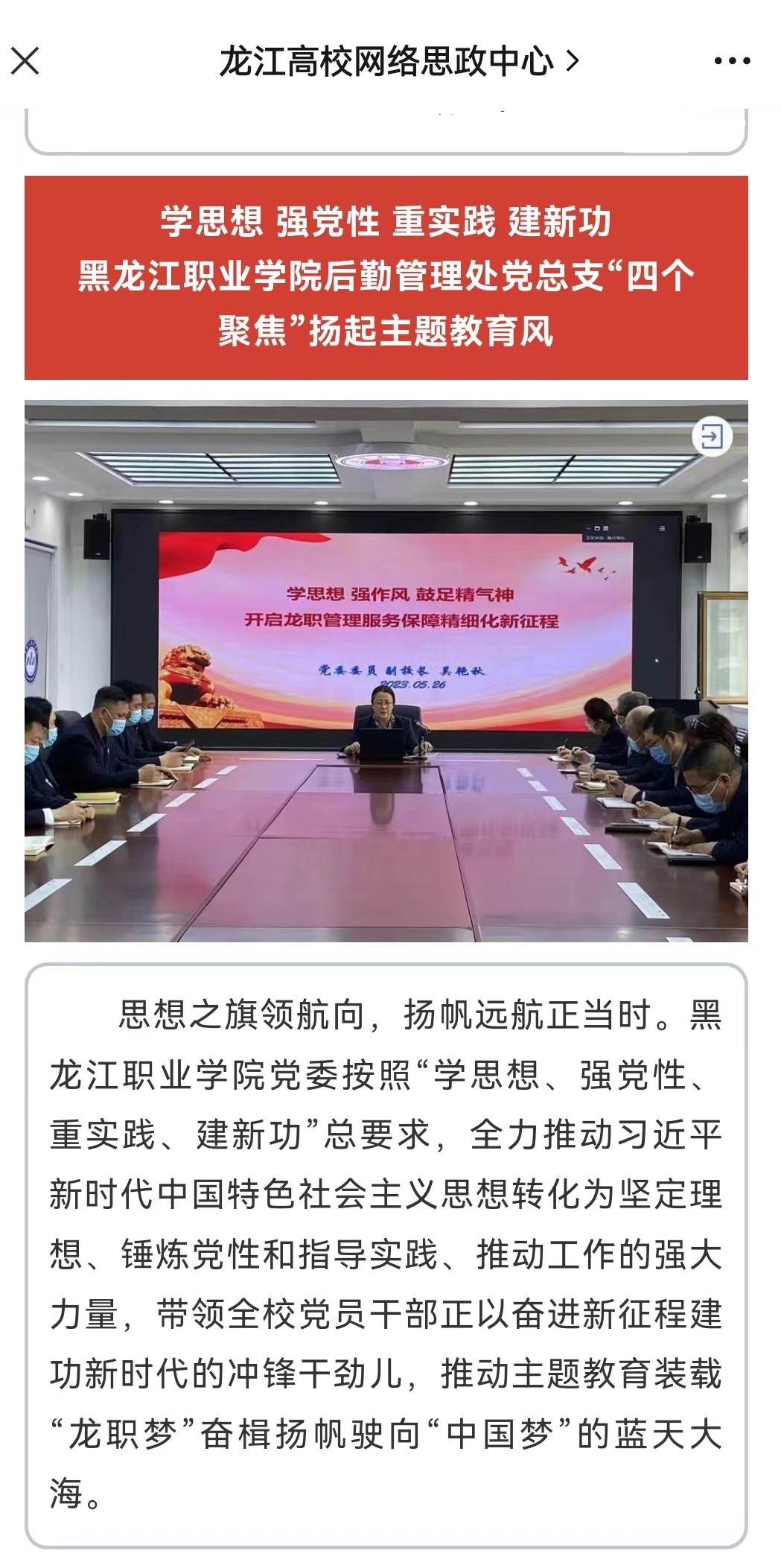 上一篇:【龙江高校网络思政中心】学思想 强党性 重实践 建新功 BB贝博艾弗森官方网站后勤管理处党总支“四个聚焦”扬起主题教育风帆