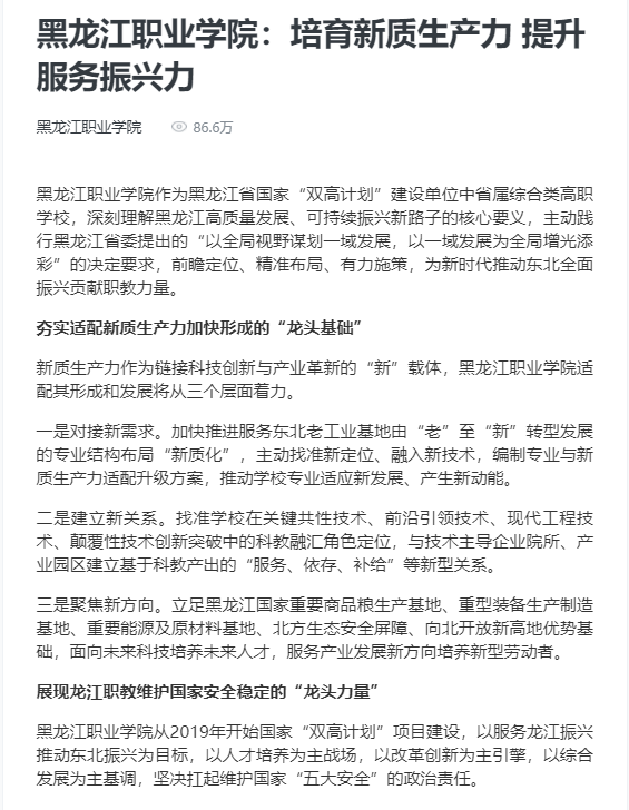 下一篇:【新华社黑龙江频道】BB贝博艾弗森官方网站依托国家智慧教育公共服务平台创新“一核三线六精神”育人模式