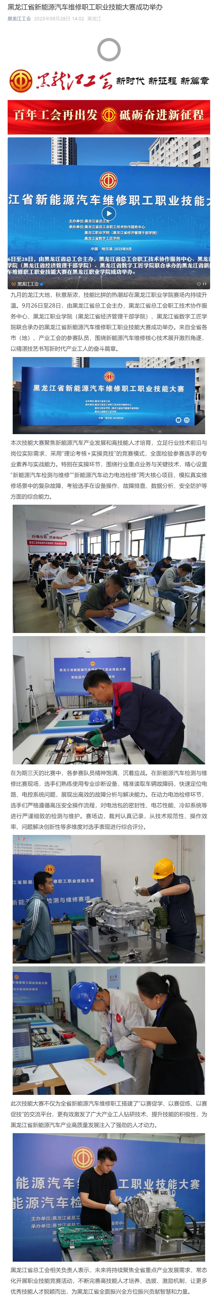 【黑龙江工会】黑龙江省新能源汽车维修职工职业技能大赛成功举办
