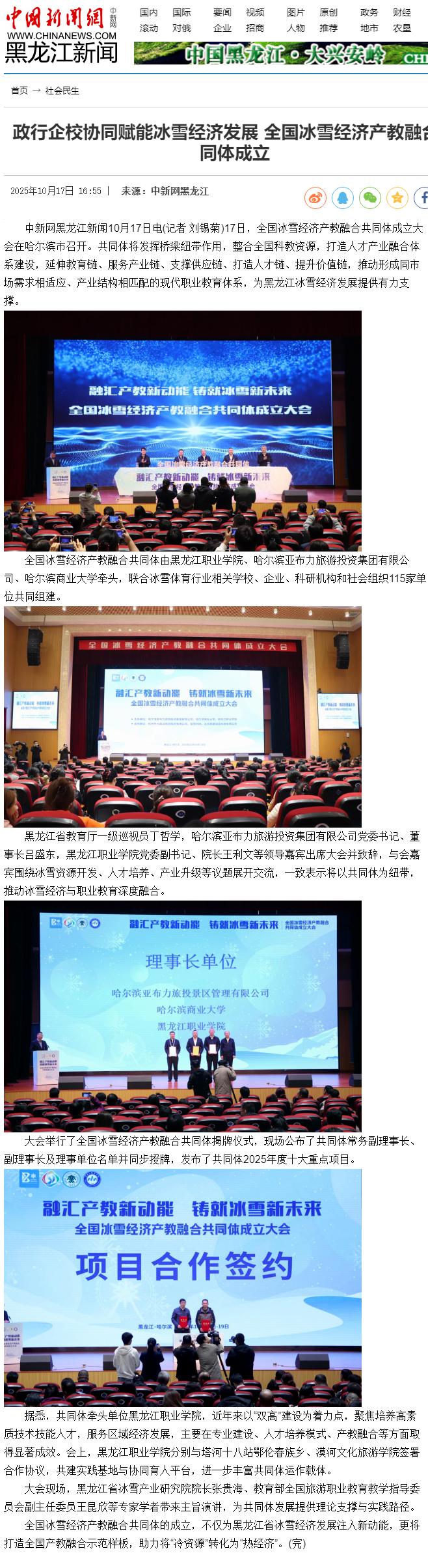 【中国新闻网】政行企校协同赋能冰雪经济发展 全国冰雪经济产教融合共同体成立