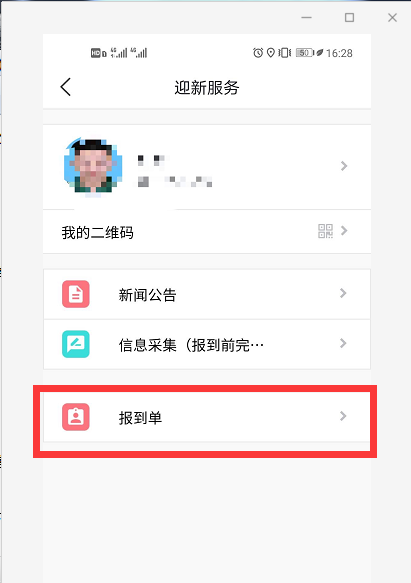 点击后可在迎新服务中选择“我的迎新”进行信息采集(必填)、到站登记(非必填)、入学教育(必填)等业务的办理。