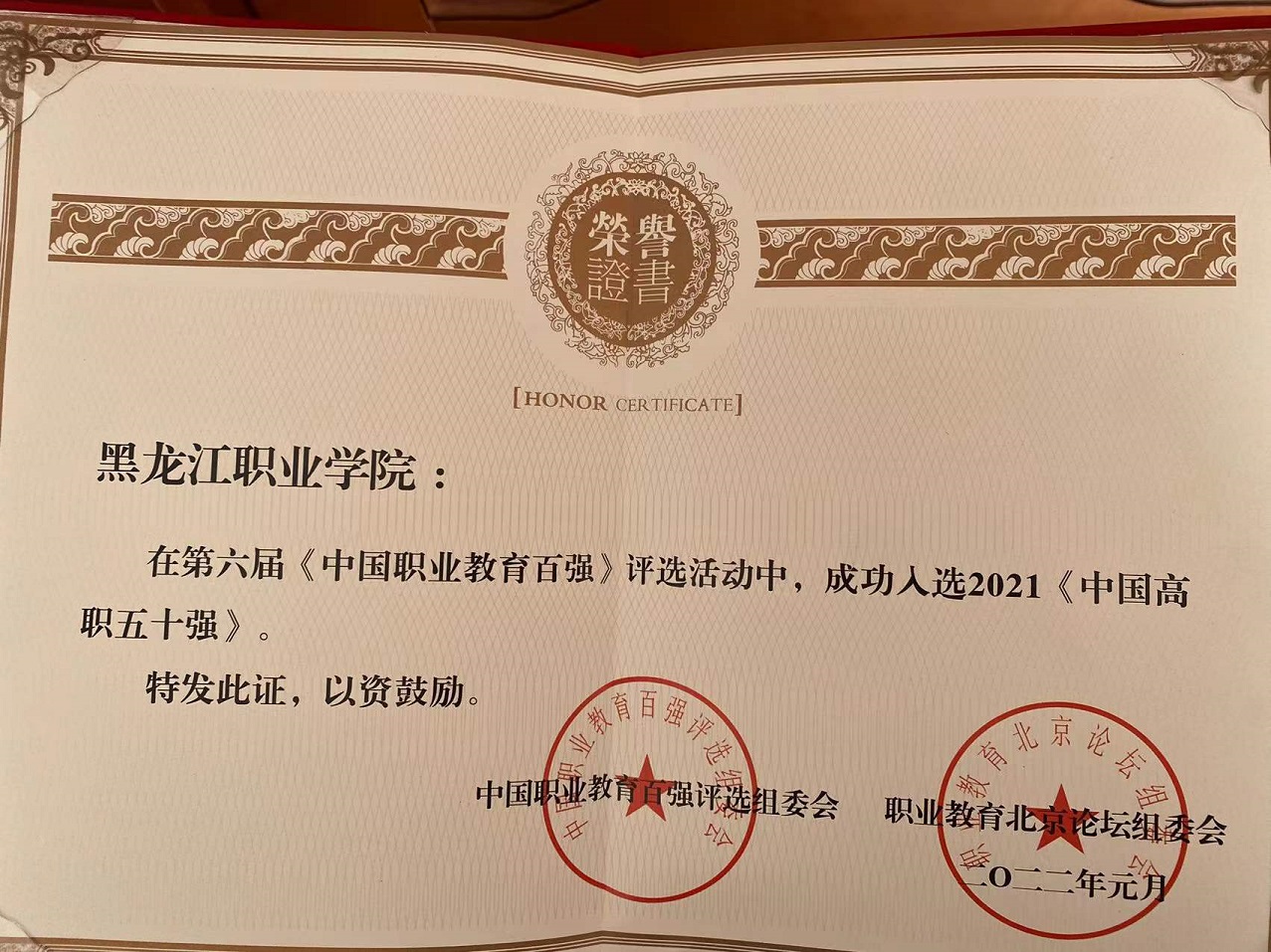 1月9日,第六届中国职业教育百强发布会暨第六届职业教育论坛在北京大学召开。会上,公布了2021年第六届中国职业教育百强入选名单(包含2021中国高职50强、2021中国中职50强)。贝博官网成功入选2021中国职业教育百强、中国高职50强,是黑龙江省唯一入选的高职院校。校长王利文代表学校出席发布会及颁奖仪式。