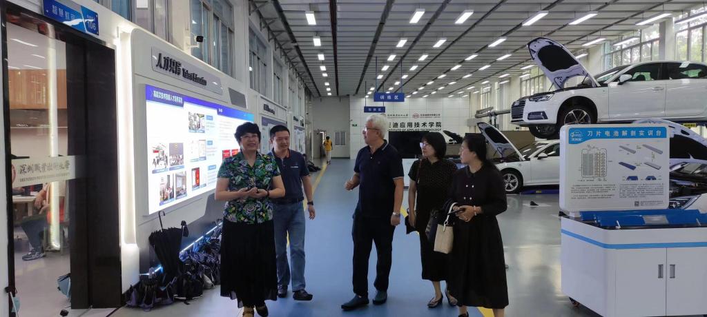 调研组来到全国党建工作示范高校——深圳职业技术大学,聆听了深圳职业技术大学党委书记杨欣斌题为《奋力当好中国职业教育创新发展的第一艘“冲锋舟”》的专题报告,重点学习交流了党建工作示范高校培育创建经验、党建“四纵九横”工作格局、校企党建共建“六联模式”构建、“智慧党建信息系统”开发及应用等内容。随后,调研组参观了教育部“一站式”学生社区崇理书院,学习探究学生社区党建“标准+”模式和“1+10+N”的学生社区体系架构,走进深职华为ICT学院、比亚迪应用技术学院,实地考察院校企“九个共同”和“课证共同生长”人才培养模式取得的成果成效。
