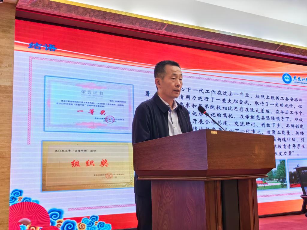 周家郁详细介绍了学校开展“红色宣讲行动”“乡村振兴行动”“关爱学生行动”“传承品牌行动”四大行动的典型做法,通过“一调二查三保障,四进五帮六融合”等措施,全力打造“龙职”关工品牌,扩大“龙职”社会影响力,提高学校知名度。