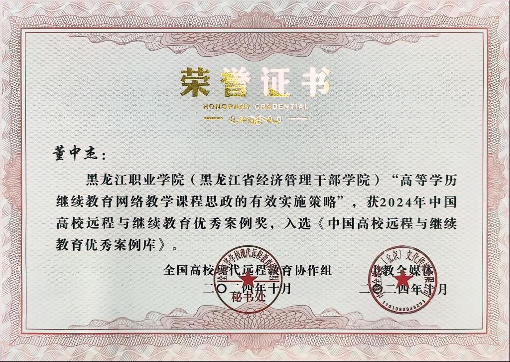 学院自建网络教学平台“龙知网”课程数量、课程质量、用户数量、服务范围均列省内同类型院校之首,《审计实务》等四门课程先后入选黑龙江省高等学校课程思政示范课程和教学团队。2024(第十届)中国远程与继续教育大会,贝博官网成人学历教育斩获三项殊荣,校本部教学点荣获2024年度高校继续教育优秀教学点,申报的两项案例双双入选“中国高校远程与继续教育优秀案例库”。